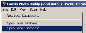 Connect to a Family Photo Buddy Server Family Photo Buddy Server is a separate program that runs to "serve up" a Family Photo Buddy database. It allows many people to share or collaberate on the same picture database. See the Share Pictures page for information about running your own Family Photo Buddy Server. The instructions below assume you already know the name or address of the server you are connecting to. To connect to (open) a Family Photo Buddy Server, start Family Photo Buddy, and